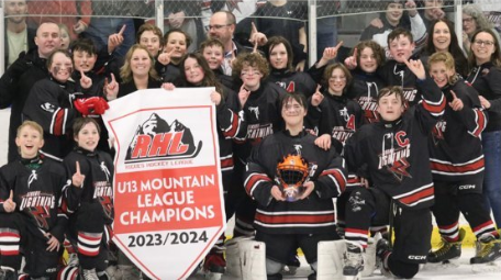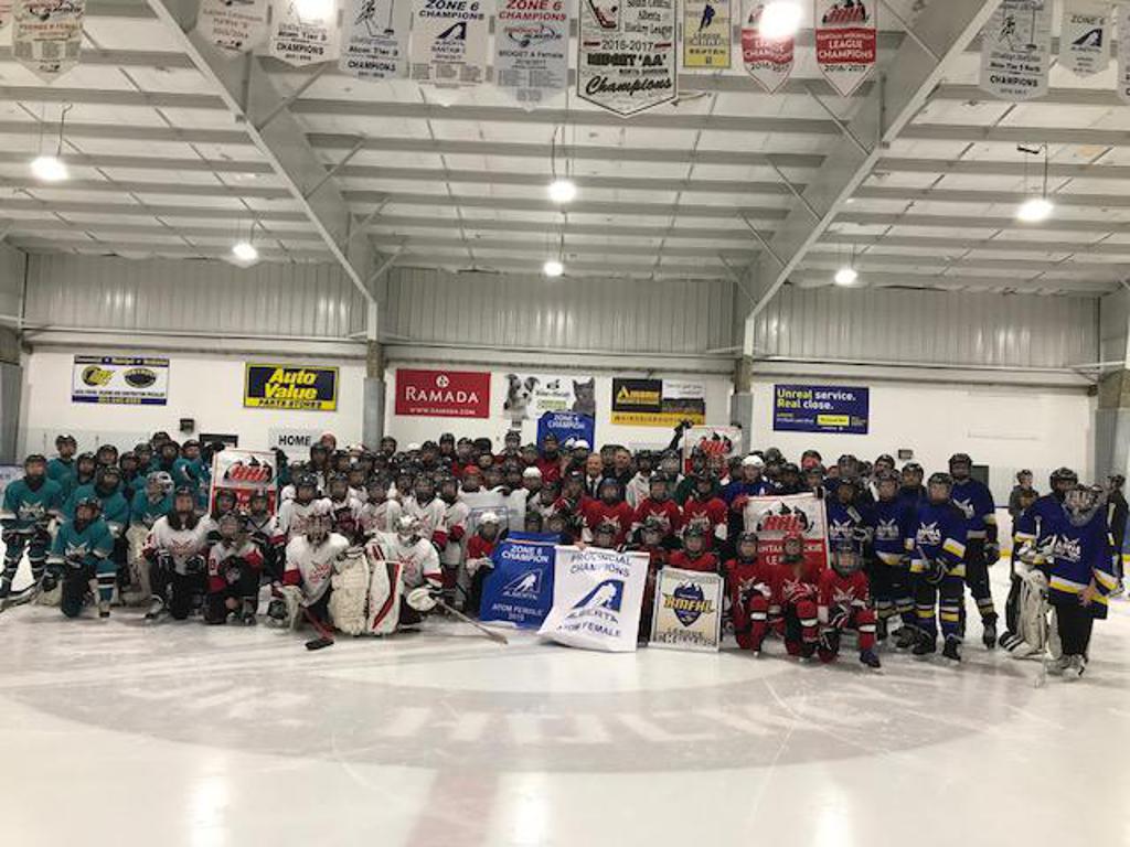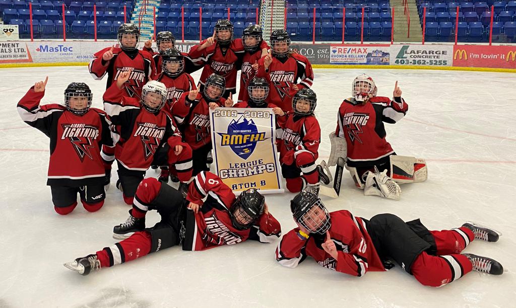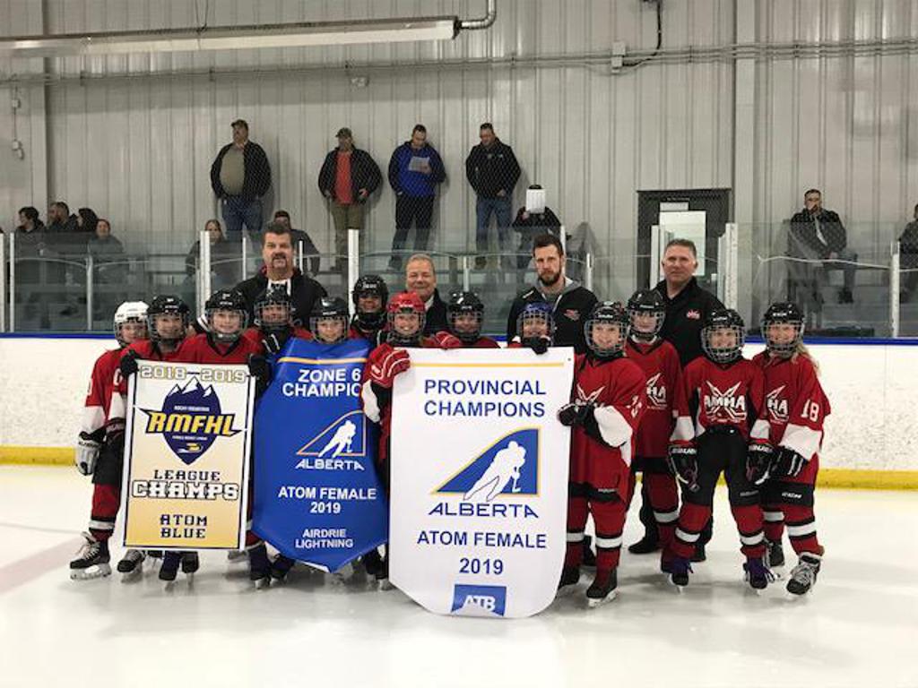 Congratulations to our Atom Female team who had a very successful season, winning two away tournaments and finishing in first place after Regular Season with 30 points. This brought them their first banner, the RMFHL Banner. They got a by for the 1st round of Playoffs and dominated the opposing team in the 2nd round of Playoffs. They took the 3rd round of Playoffs in 2 games and won the Zone 6 Banner as well. They were ready to go to Provincials before hockey was shut down due to the Corona Virus. We are extremely proud of these young ladies and wish them much success next season.
